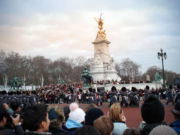Troca da Guarda na Spur Rd., de frente ao Palácio de Buckingham.