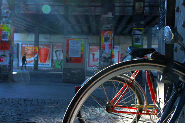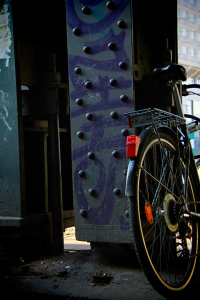 Bicicleta sob viaduto da estação Alexanderplatz, na Karl-Liebknecht-Strasse.