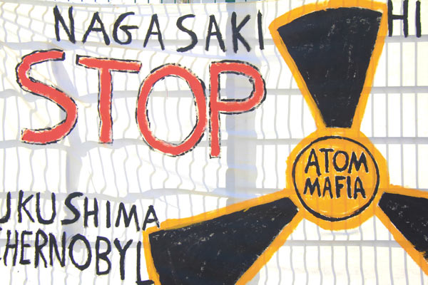 Faixa de protesto contra a geração de energia atômica, em Tacheles.