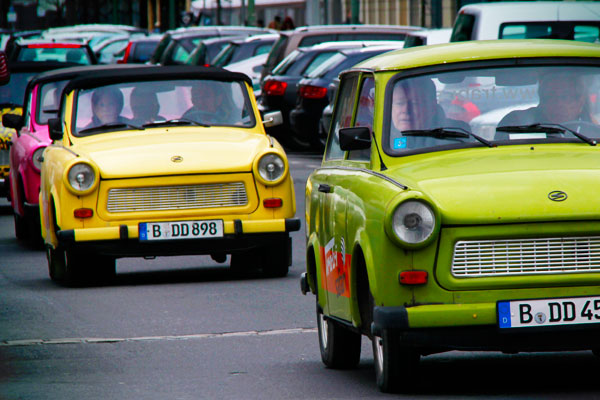 O Trabant era produzido somente na Alemanha Oriental e era o preferido dos cidadãos de lá. Todos queriam ter essa “caixa de papelão sobre rodas”, como era apelidado. Hoje o veículo é utilizado para passeios turísticos. Vi um monte deles em Checkpoint Charlie.