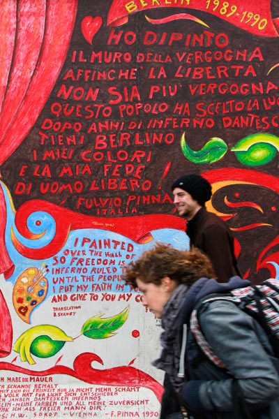 Detalhe do mural Hymne an das Glück (hino à alegria), do artista Fulvio Pinna, na East Side Gallery.
