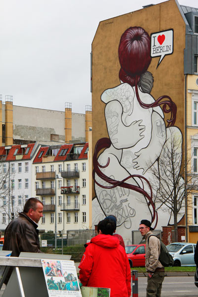 Em Berlim, a arte de rua com seus grafites e murais são uma marca registrada. Talvez essa atividade tenha sido motivada durante a separação das duas Alemanhas, em que construções, como Muro de Berlim, eram encobertas de pichações de protesto à divisão. Os pichadores só conseguiam chegar próximo ao muro no lado ocidental, pois, na parte oriental, a barreira era vigiada 24/7 e a faixa de morte impedia a aproximação.