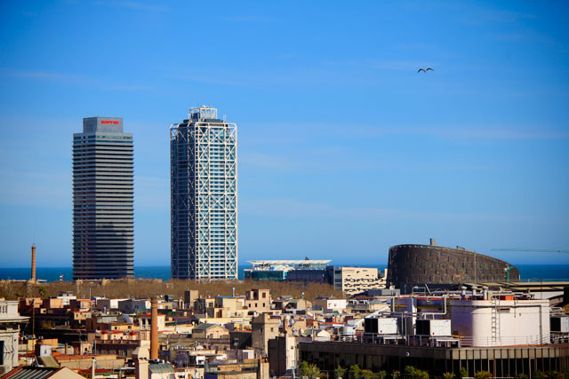 Da La Monumental rumamos em outra caminhada até a fálica Torre Agbar, prédio onde está instalada a Aigües de Barcelona, companhia de águas da cidade. O edifício não está aberto a visitações. É bem interessante por fora, e, à noite, sua iluminação é espetacular. Entretanto, não acho que valha a pena uma ida até lá, caso o turista tenha poucos dias em Barcelona.