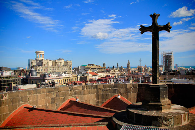 Do terraço da catedral tem-se uma vista incrível. E que céu azul! Inexplicável a sensação de ver a cidade em 360º logo no primeiro dia, iluminada por um sol hiper-acolhedor e pelos sorrisos de satisfação dos coleguinhas. É, o efeito revigorante do vinho era certo! Fez-me dizer “eu te amo” à capital da Catalunha logo no primeiro encontro.