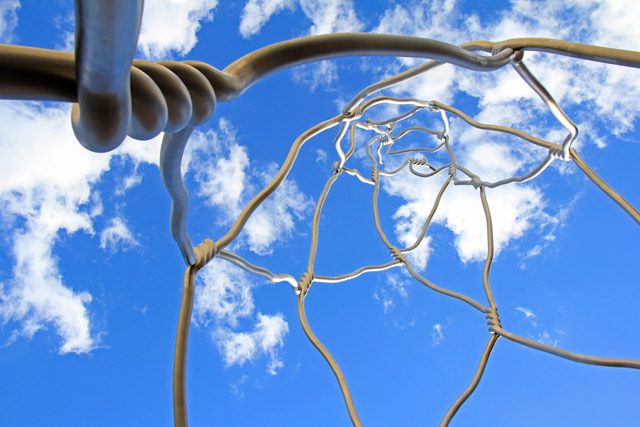 Rodamos mais um pouquinho pelas redondezas, passando rapidamente pela Plaça de Sant Miquel (Praça de São Miguel). Ali encontramos uma escultura formidável, uma espécie de torre de tela de arame que dava a impressão de que havíamos encolhido. Com seus 30 m de altura e 12 m de diâmetro, a Homenatge als castellers (homenagem às “torres humanas”) é uma criação do artista catalão Antoni Llena i Font, inaugurada em 2012. O monumento é dedicado aos castellers, um fenômeno cultural particular da Catalunha que consiste na formação de torres humanas. Essa tradição tem suas origens no fim do século XVIII.