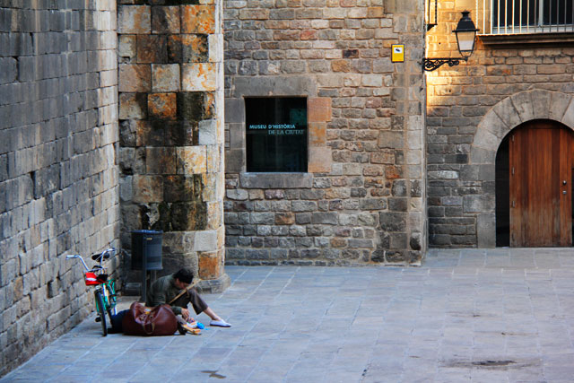 O Museo d’Història de Barcelona está localizado na Plaça del Rei (Praça do Rei), um pátio do antigo palácio, hoje cenário de alguns shows improvisados ou planejados. É um dos locais mais movimentados da cidade medieval. No entanto, naquele dia, estava bem calmo.