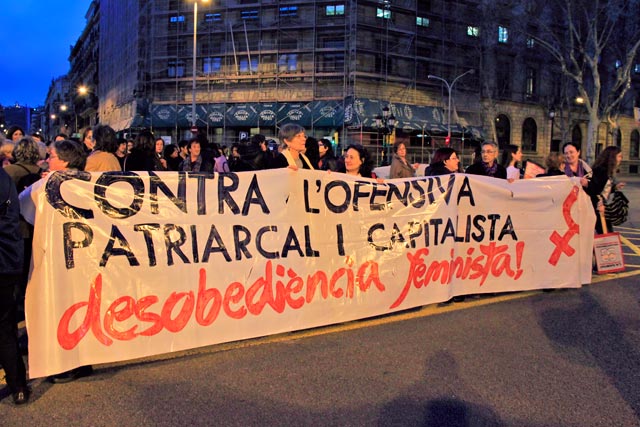 Deveríamos retornar ao hotel para um banho e um brevíssimo descanso. Que descanso que nada! E nada de banho! Ainda estávamos empolgados, cheios de energia, aparentemente limpos, bonitos e cheirosos. Portanto seguimos direto para a Gran Via. Enquanto procurávamos por um bar, passamos por uma manifestação gigantesca de mulheres. E eram bravas! O movimento era encabeçado por uma faixa que dizia “Contra l’ofensiva patriarcal i capitalista. Desobediència feminista!“.