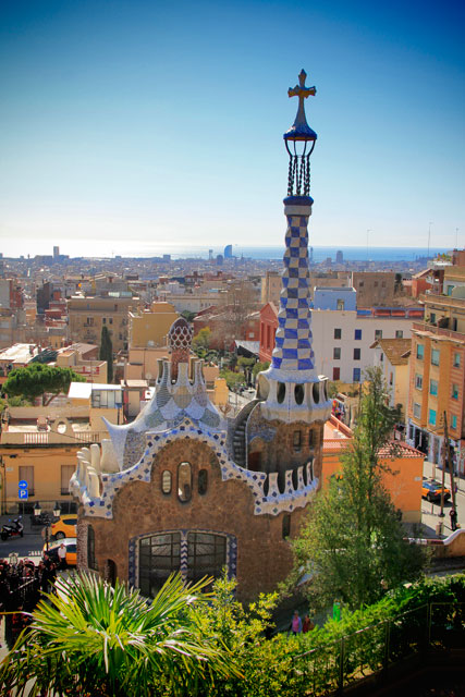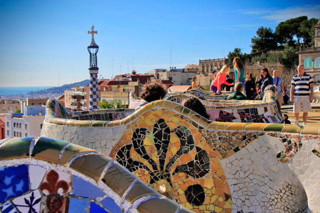 Do Monumento ao Calvário descemos em direção à parte mais célebre do parque: o ambicioso complexo arquitetônico concebido por Gaudí, sob encomenda do empresário Eusebi Güell. A construção data do início do século XX e é um verdadeiro show do modernismo catalão. As formas orgânicas, os mosaicos, as interpretações e tudo o que ladeia aquelas edificações são de uma qualidade artística fenomenal! Assim como na Basílica Sagrada Família e em todas as outras grandes obras de Gaudí, naquele complexo, a natureza desponta num simbolismo meticulosamente conceituado. Nenhuma forma foi definida ao acaso, como muitos pensam.