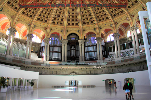 Impressionantes os afrescos trazidos de algumas igrejas rurais do norte da Catalunha, reconstituídos completamente ou em fragmentos, representando o formato original dos espaços anteriormente ocupados. O tempo inteiro eu ficava imaginando o trabalho que deu montar aquilo tudo, desde estudos e técnicas de restauração à cautela no manuseio de peças e estruturas tão delicadas e antigas. Mais tarde, descobri que essa técnica se chama strappo, a qual permite o descascamento dos afrescos das paredes por meio de um tecido embebido de cola à base de cartilagem. Os afrescos são cobertos com esse material que, ao secar, possibilita a retirada da imagem da parede. Nota 1.000 para o MNAC! Sem mencionar o maravilhoso salão central abobadado, muitas vezes utilizado para concertos.