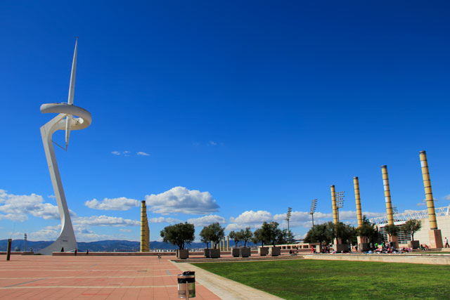 Ficava imaginando a emoção/tensão dos atletas chegando ali para disputar suas provas. A energia dos jogos de 92 parecia estar ainda ali, embora a chama olímpica já tivesse sido apagada há quase 21 anos. Esse meu entusiasmo não se deveu à nostalgia da minha carreira de atleta, mas ao lugar escolhido em Barcelona para receber os jogos. Parecia que tudo havia sido sincronizado propositalmente no planejamento daquele complexo esportivo: natureza, arquitetura e espírito olímpico. Então, amigo turista, a Anella Olímpica (Anel Olímpico) de Montjuïc é passeio obrigatório em Barcelona. Se você gosta de jogos olímpicos, sinta a atmosfera esportiva. Se não, apenas tibidabeie e curta paisagens sem igual vistas de vários pontos do complexo. E o sol só ajudava!