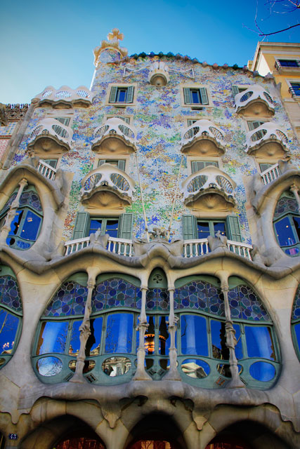 Além da Casa Milà, existem, em Barcelona, outras duas também projetadas por Gaudí, que são a Casa Batlló, localizada ali mesmo no Passeig de Gràcia, a três quarteirões da La Pedrera, e a Casa Vicens, localizada na Carrer de les Carolines. Por motivo de tempo, não incluí a Casa Vicens no roteiro. Descemos, então, até a Casa Batllò. O valor do ingresso era ainda mais temperado do que o da La Pedrera, e isso nos desanimou bastante. Preferimos não entrar. Embora eu não tenha conhecido seu interior, estou certo de que vale a pena a visita, principalmente para os amantes da arquitetura.