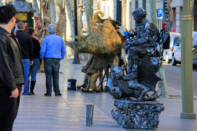 A La Rambla possui de tudo, desde lojas, cafés, restaurantes, floriculturas até artistas performáticos, com destaque para as “estátuas humanas”. Milhares de turistas e catalães tomam conta de toda a sua extensão, desde manhã cedo até altas horas da noite. O astral é muito bom!