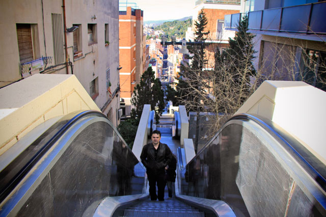 Começamos o roteiro por um dos locais mais esperados por mim: o Parc Güell (Parque Güell). Para chegar lá, pegamos o metrô e descemos na estação Vallcarca. Eu esperava ingressar no parque pela entrada principal, na Carrer d’Olot, conforme planejei. Contudo, no percurso até lá, avistamos algumas placas que indicavam um caminho diferente do esperado. Por que não segui-las? Estariam mais certas do que meu palpite. Só sei que desembocamos numa via chamada Baixada de la Glòria, uma espécie de megaladeira, felizmente equipada com várias escadas rolantes ao ar livre. Nota 20 em acessibilidade! Interessante essa preocupação da prefeitura com os transeuntes, sejam moradores locais ou turistas.