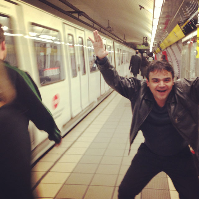 E que bobajada! Naquela nossa manifestação equivocada de estilo, regressamos uns 30 anos de imaturidade, e, depois de curtir os bares das redondezas, saímos arruaçando Barri Gòtic afora. Era foto na calçada, foto no meio da rua, foto no metrô, foto na escada rolante etc. Pelo que eu saiba, os góticos não curtiam muito essa coisa de fotografia. Estávamos mais para emos jacus fazendo fotos para o Orkut.