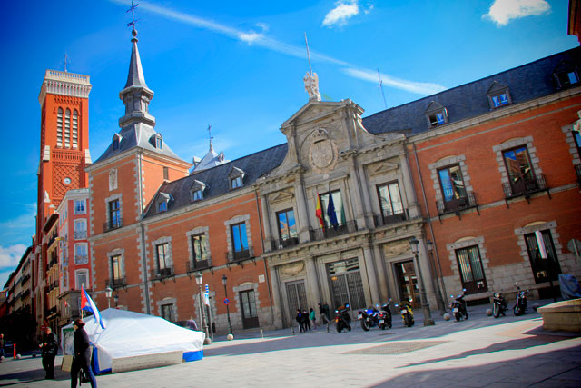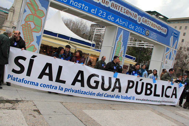 Do Parque del Oeste seguimos até a bela Plaza de España, onde havia uma feirinha de gastronomia (ôba!) e artesanatos. Como não poderia ser diferente, ali acontecia uma das zilhões de manifestações espanholas. Ocorre tanta manifestação naquele país que dá até para montar um roteiro turístico só de tours em grupos de protestos. Em Barcelona, ficamos muito impressionados, pois, por onde quer que passávamos, lá estava um montinho de gente insurgindo contra alguma coisa. Na Plaza de España, opunham-se à privatização do Canal de Isabell II, companhia pública de saneamento de Madri.