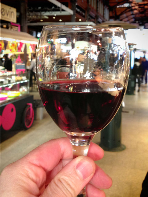 A melhor coisa do San Miguel é que suas atividades são encerradas tarde da noite. Às segundas, terças, quartas e domingos, funciona até meia-noite. De quinta a sábado, o horário é estendido até as duas da matina. Celebramos isso com uma boa taça de vinho. E se o vinho é espanhol, não tem como errar na escolha. Estava delicioso, além de ter potencializado nossa empolgação pela cidade.