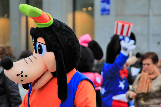 Acredito que a Puerta del Sol é o ponto mais centrão – eu disse centrão – de Madri. Cidadãos madrilenhos e turistas se misturavam numa muvuca de dar gosto. Era a própria paella humana. Adorei os personagens dos desenhos animados que circulavam por lá, oferecendo-se aos turistas para fotos em troca de um agrado. Tinha a Minnie, o Mickey, o Pateta, o Bart e o Homer Simpson, o Ursinho Puff, Papai Smurf e o palhaço dos Jogos Mortais em seu velocípede. Este, estranhamente, era pouco escolhido para um retrato. Eu mesmo preferi não fotografá-lo, pois não estava disposto em acabar amarrado num banheiro imundo e abandonado, prestes a ter uma lâmina dividindo minha gengiva entre os dentes ou a ver minha retina sendo cortada por um estilete quente e cego, enquanto um prego enferrujado é batido no meu umbigo. Brincadeira, fiquei com medo foi de ele me cobrar a fotografia.