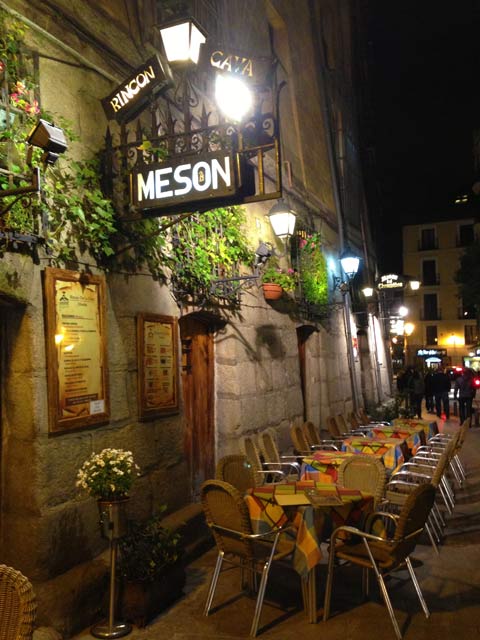 Para passar a noite, escolhemos a Cava de San Miguel, uma via muito charmosa logo ao lado da Plaza Mayor. Seus bares e restaurantes são bem bacanas, mas o movimento daquela terça-feira não era dos melhores. Mesmo assim, comemos em um de seus restaurantes.