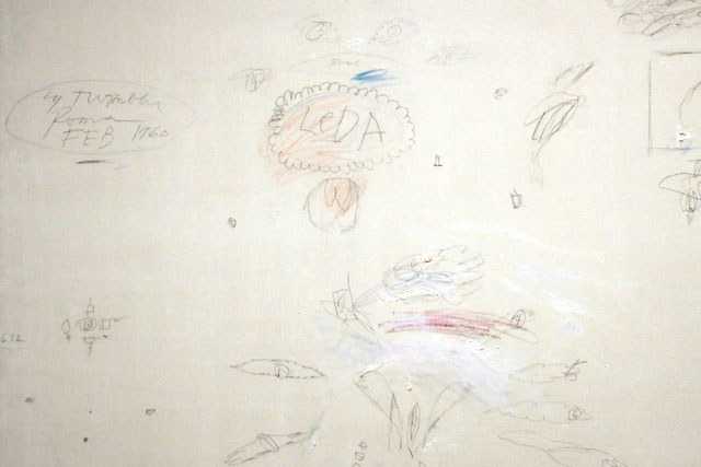 Além do vídeo da pomba-gira, adoramos a homenagem do pintor Cy Twombly a sua amada Leda. Ou Leda era sua mãe ou irmã? Ou Leda não era nada ou ninguém? Na verdade, não era homenagem nenhuma. Isso eu inventei, mas preciso que alguém me explique esse dever de casa de criança disléxica, com debilidades motoras e desorientada.