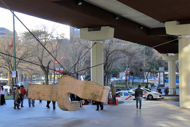 Em Atocha, pegamos o metrô e descemos na estação Colón. Demos uma brevíssima espiada na Plaza de Colón e seguimos em uma caminhada pelo Paseo de la Castellana até o Museo Arte Público de Madrid. Do ponto de vista artístico, essa atração é bem interessante. São várias esculturas ao ar livre, todas no estilo contemporâneo e de qualidade artística excepcional. Infelizmente, meus companheiros de viagem não são muito chegados em arte contemporânea. Embora eu também tenha certa resistência a esse estilo, consegui tirar proveito da exposição, mesmo porque a visita era gratuita. E a regra turística é bem clara: se é grátis, não deixe passar despercebido.