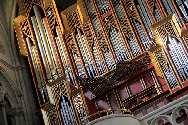 O tamanho do órgão de tubos da Almudena é impressionante! Quase não notamos a organista, que tocava uma música bem macabra, por sinal.