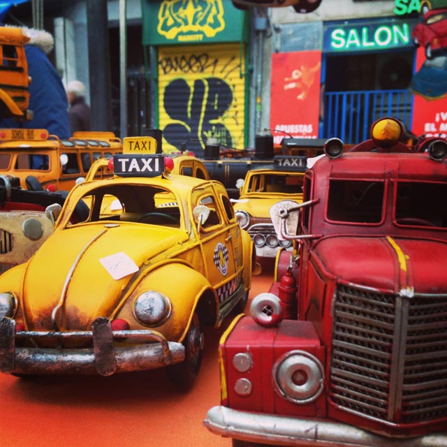 Acordamos um pouco mais cedo naquele domingo, pois partiríamos para Praga à tarde e era preciso fazer o dia render. Para fechar o roteiro, fomos a um dos melhores pontos turísticos de Madri: o El Rastro, mercado de pulgas que inicia na Plaza del Campillo del Mundo Nuevo e vai até a Plaza de Cascorro, entre a Calle Embajadores e a Ronda de Toledo. Para chegar lá, descemos na estação Puerta de Toledo, de frente para o monumento de mesmo nome. Ali começamos nossa caçada por bugigangas.