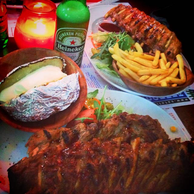 Comemos costela no Sports Cafe, 12,95 euros, um espetáculo de carne em porção inicial bem generosa que o maridão bom de garfo (digo, carnívoro ao extremo) não conseguiu comer além de uma repetição.