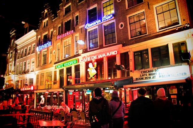 Do restaurante, retornamos à Leidseplein para um tour pelos bares. Opção não nos faltou.
