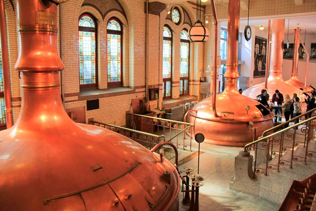 A poucos metros dali, está o Heineken Experience. O edifício foi construído em 1867 e funcionou como a primeira cervejaria Heineken até 1988. Em 1991, parte do estabelecimento foi demolido, passando a abrigar somente o centro de recepção e informação da Heineken. Em 2001, seu nome foi mudado para Heineken Experience, tornando-se um museu sobre a cervejaria e sua cerveja. Quando comuniquei ao Élcio a inclusão dessa atração no roteiro, ele torceu o nariz e fez pouco caso. Acredito que tenha achado a proposta do museu muito comercial, uma afronta à história de Amsterdam. Ainda na bilheteria, os olhares do meu amigo entregavam sua insatisfação, mas bastou caminharmos pela exposição e seus ânimos se alçaram. Mesmo sabendo que aquilo é uma megaestratégia de marketing, caímos na armadilha feito três ratinhos.