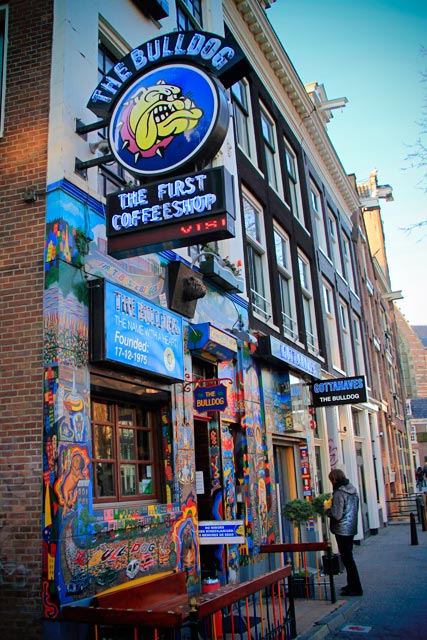 Perdemo-nos diante de tanta opção de bar, café e coffeeshops. Quase nos perdemos também no meio de tanta gente. Eram pessoas de todo o tipo, numa mescla cultural de dar gosto! Rodamos a praça rapidamente e, sem titubear, escolhemos o Satellite Sports Café para comer alguma coisa. Logo na entrada, o segurança, extremamente sorridente, disse: “Entrem! Temos maconha também, se quiserem”. Afe! Não sou careta, mas aquilo foi meio estranho. Eu e todo o restante do planeta sabemos que em Amsterdam a maconha é legalizada – ou melhor, tolerada –, mas uma abordagem dessas é sempre diferente. Enfim, gostei da situação. Não que eu pretendesse consumir um cigarrinho de artista naquele café, mas sentir a liberdade de poder escolher é sensacional. E não estou falando de uma escolha irresponsável, mesmo porque nunca vi tanta gente responsável na minha vida como em Amsterdam. Não vi arruaceiros, não vi desordeiros e nem infratores. É tudo organizado e respeitoso.