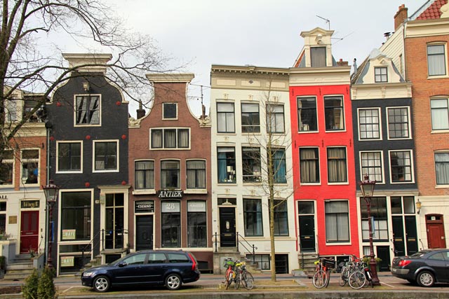 Essas caminhadas nunca cansavam! Embora a arquitetura da cidade seja repetitiva, cada canto exibe uma particularidade excepcional. Os edifícios, amontoados uns nos outros, são curiosamente tortos, e devido ao espaço racionado, suas escadas possuem degraus bem estreitos, onde quem calça mais de 40 tem dificuldades para descer e subir. Considerando uma população em que a altura média é “mais do que alta”, acredito que 97,9% dos amsterdammers têm dificuldades de se movimentar pelas escadas. É nessas horas que agradeço a Deus minha estatura portátil. Bailarinas também se dão bem nesses degraus, pois podem subi-los nas pontas dos pés ou com os joelhos em andeor, posição mais conhecida como dez-pras-duas.