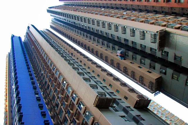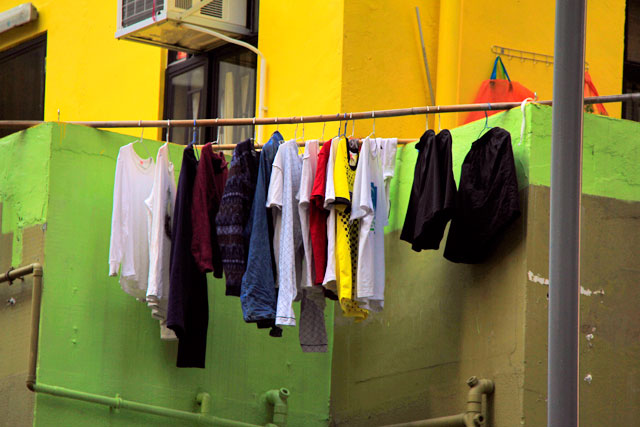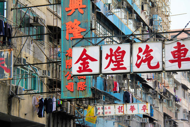Na caminhada até o ponto, entre as ruas Carpenter e Prince Edward, as fachadas dos prédios não ficavam mais bonitas e nem mais organizadas, mas era um cenário de que eu gostava muito. É uma Hong Kong ainda mais rude, aparentemente influenciada pela arquitetura caótica da Cidade Murada.