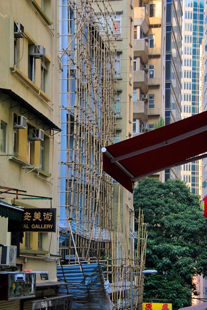 Chegamos à conclusão de que com pedreiro chinês não tem frescura. Nas reformas ou construções, nada de andaime de ferro super-resistente. O negócio é se apoiar nas estruturas feitas de bambus amarrados por fitas pet strap. Se em Hong Kong constroem-se arranha–céus dessa maneira, quem somos nós para argumentar seus aparatos.