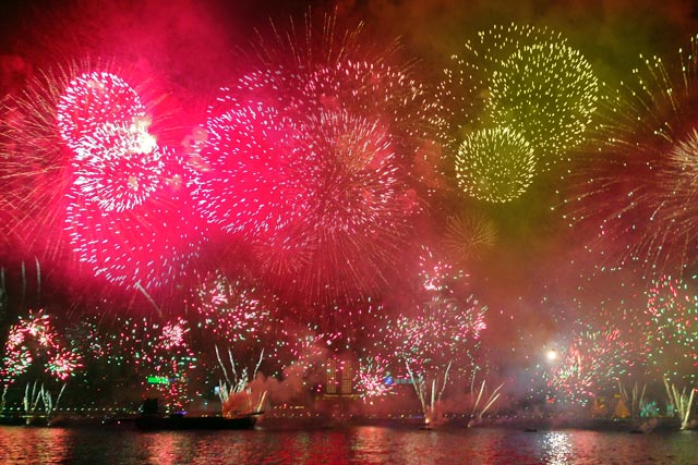 Após a longa, porém agradável espera, começou a contagem regressiva para 2014, liderada por meio de luzes animadas na fachada do imenso ICC Tower, edifício de 484 metros de altura, localizado em Kowloon. Em seguida, estouraram-se os fogos. Sem dúvidas, um espetáculo!