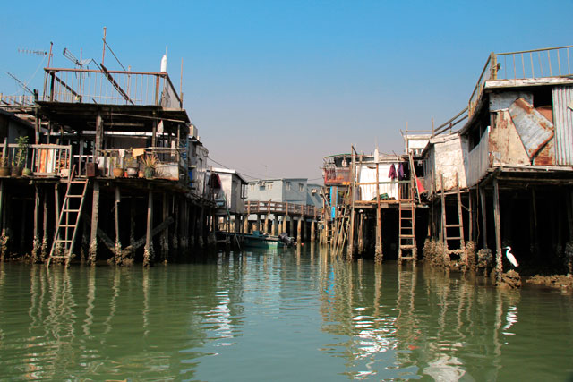 Tai O é sensacional! A simplicidade de suas ruelas e de suas casas, aliada ao dia a dia dos nativos, oferece uma jornada memorável. Assim que chegamos lá, embarcamos no passeio de barco. Nele, pudemos navegar pelos canais ladeados pelas feiosinhas mas digníssimas casas de palafita e adentrar em um pequeno trecho do Mar do Sul da China.