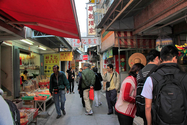 A vila é um resumo de boa parte da tradição chinesa. Na estreita Tai O Wing On Street, além do comércio de frutos do mar, de comidas típicas e de artesanato, vimos um pequeno templo e cantos de adoração budista; cruzamos com nativos em suas bicicletas, protegidos pelos tradicionais chapéus de palha, e com idosos e animais que se esquentavam ao sol; passamos diante dos interiores escancarados das residências, em que grupos de pessoas se divertiam com um jogo de peças que não consegui identificar; compramos alguns souvenirs, e, inevitavelmente, vimos mais frutos do mar. Era o mínimo que se poderia esperar de uma vila de pescadores.