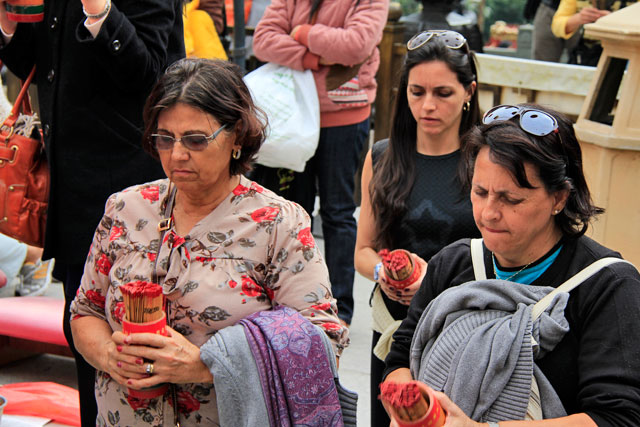 Mesmo com a fumaceira, adorei o templo. A decoração peculiar e a devoção silenciosa encantam até os menos religiosos, agnósticos e ateus.