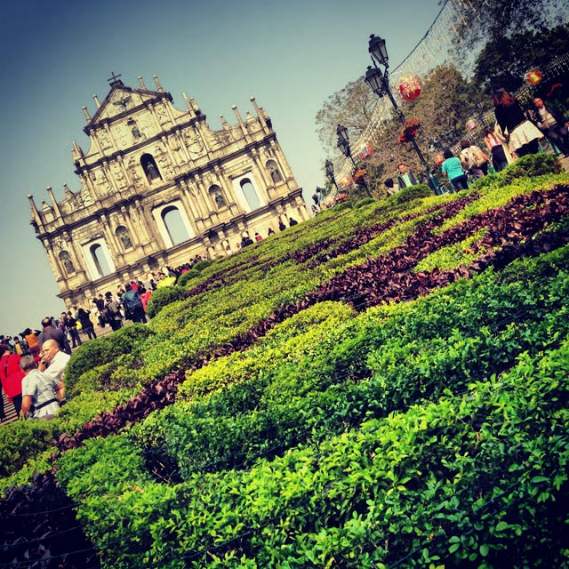 A Igreja de São Domingos abriga o Museu de Arte Sacra, no qual fizemos uma breve visita. De lá, seguimos em direção à movimentada Rua de São Paulo, que leva ao ponto mais famoso do centro histórico de Macau: as Ruínas de São Paulo.