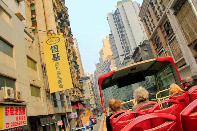 Da São Lourenço, descemos a Travessa do Padre Narciso até o Nam Van, lago margeado pela Avenida Doutor Stanley Ho. Passamos pelo Palácio do Governador e seguimos até a Avenida de Almeida Ribeiro, onde viramos à esquerda e rumamos em uma longa caminhada até a parada Ponte 16. Pegamos o ônibus turístico em direção ao Terminal Marítimo do Porto Exterior e embarcamos de volta a Hong Kong.