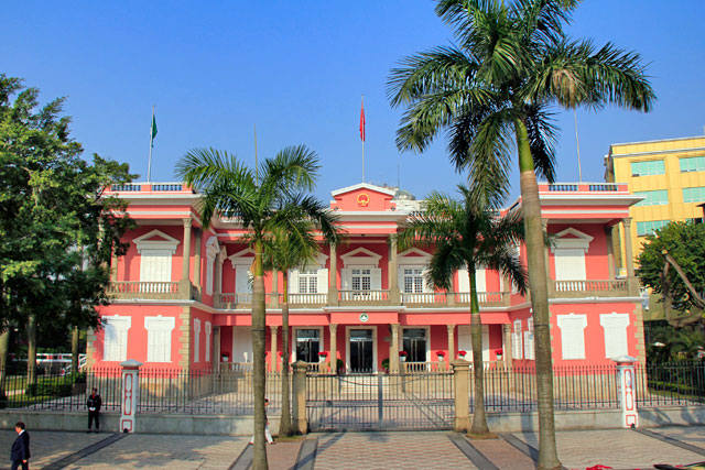 Passamos também pelo Palácio do Governador, onde o Chefe do Executivo trabalhava até 1999. Nessa época, o edifício era o centro político mais importante de Macau. Depois disso, continuou a ser a sede oficial da RAE, mas o governador já não trabalha mais lá, o que diminui a importância do palácio. Hoje, serve somente como local de recepção de diplomatas e de figurões importantes.