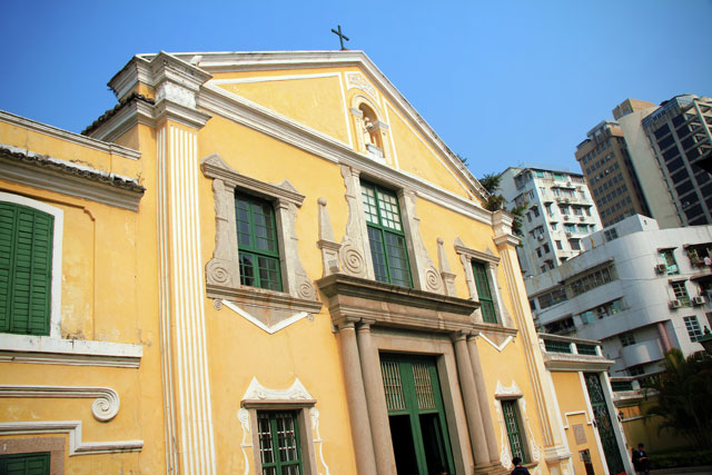 Do Teatro Dom Pedro V, descemos até a Rua Central e caminhamos um quarteirão até a Rua de São Lourenço, onde está localizada a Igreja de São Lourenço, construída pelos jesuítas em 1560. Sua escadaria, que antigamente possuía vista para o mar, acomodava as famílias dos marinheiros portugueses que ali os aguardavam. Por causa disso é conhecida como a “Igreja dos Ventos de Navegação Calma” e como a “Igreja do Vento Favorável”. Algumas portuguesas católicas também iam para as escadarias rezar pela segurança de seus filhos e/ou maridos comerciantes ou navegadores.