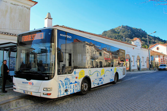 Pegamos o comboio das 8h23. Às 9h35, já em Sintra, embarcamos no 434, ônibus turístico do tipo hop on hop off, da empresa Scotturb.