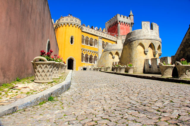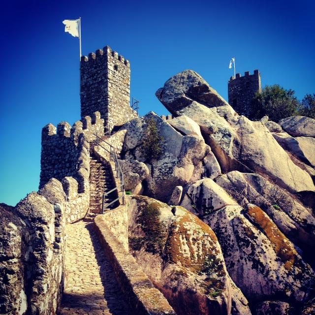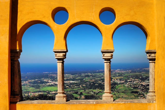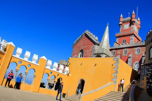 O Palácio da Pena é o expoente máximo do romantismo do século 19 em Portugal, reconhecido por ser o primeiro palácio da Europa a ser construído nesse estilo. Antes, fora um convento, impiedosamente reduzido a ruínas com o terremoto de 1755. No século 19, o rei consorte Fernando II passou por ali e ficou maravilhado com o que restou do convento e com a vista exuberante das redondezas, assinalada pelo Castelo dos Mouros e pela beleza absoluta das paisagens naturais. Por isso, decidiu construir ali sua futura residência de verão, em 1839. Eu moraria lá fácil!