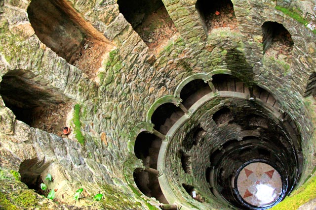 As atrações que mais me fascinaram na Quinta da Regaleira foram o Poço Iniciático e a galeria subterrânea a que ele dá acesso. O poço, que se acredita ter sido usado em rituais de iniciação à maçonaria (daí seu nome Iniciático), possui uma escadaria espiralada de nove patamares, invocando a Divina Comédia de Dante e os nove círculos do inferno, do paraíso e do purgatório. No fim da escadaria, existe uma rosa dos ventos sobre uma cruz templária, uma alusão à Ordem de Rosa-cruz.