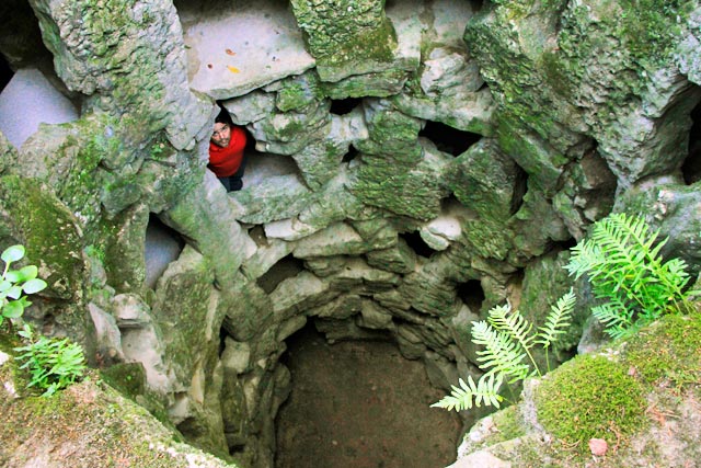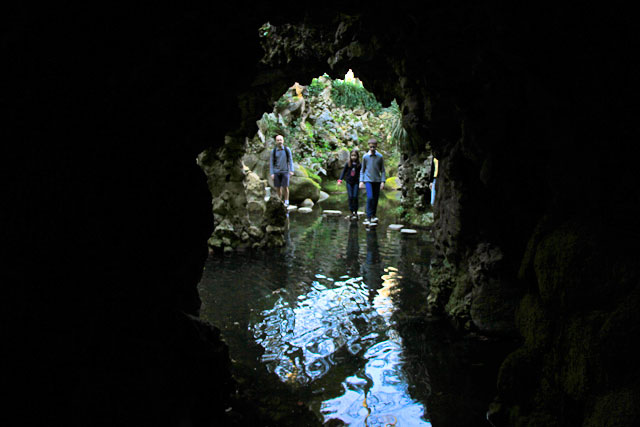 Saída do túnel no Lago da Cascata, na Quinta da Regaleira