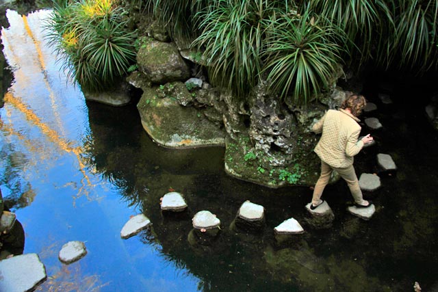 Não havia turista pouco encantado na Quinta da Regaleira. Mesmo que estivéssemos extasiados com tanta beleza e originalidade, fizemos nosso trajeto de forma errada. Recebemos um mapa na entrada, mas fomos caminhando a esmo, negligenciando o percurso mais eficiente. Embora nosso desleixo tenha nos proporcionado bastante surpresa, perdemos um bocado de tempo procurando entender a quinta e percorremos muito caminho repetido tentando acertar as trilhas.