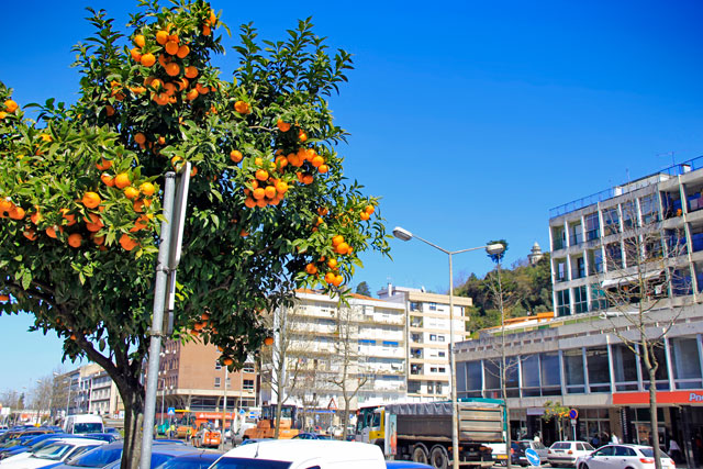 Chegamos a Coimbra às 11h. Assim que desembarcamos na Rodoviária da Beira Litoral, tomamos um café e seguimos caminhando em direção ao centro histórico. Esse início de jornada foi recepcionado por belas laranjeiras sobrecarregadas, na Av. Fernão de Magalhães.