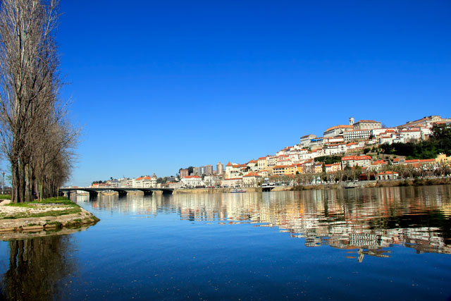 Daquele ponto, a cidade mostra-se em sua melhor forma. É algo hipnotizante! Impossível não se encantar com o amontoado arquitetônico que se inicia na imagem refletida no rio e culmina coroado pela Universidade de Coimbra.
