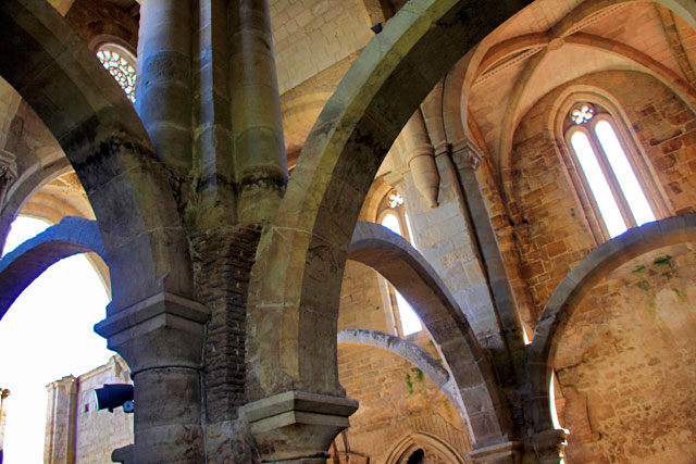 Atravessamos o rio pela Ponte de Santa Clara e nos dirigimos ao Mosteiro de Santa Clara-a-Velha. No caminho, fomos abordados por tantas outras laranjeiras satânicas, dessa vez plantadas no lado de dentro dos muros de algumas propriedades privadas, o que fazia delas ainda mais tentadoras. Diferentemente de Joãozinho e Maria, ignoramos a oferta e continuamos nosso percurso até o mosteiro.