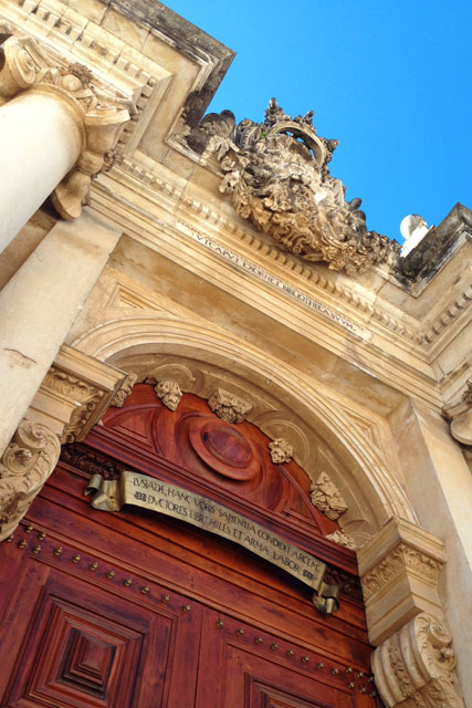 No campus, começamos a visita pela Biblioteca Joanina. Uma pena não poder fotografar lá dentro, pois aquele é o lugar mais formidável de Coimbra. Tenho dúvidas quanto ao nível de concentração dos que ali estudam. Como conseguem raciocinar rodeados por uma inexplicável beleza arquitetônica?! Construída entre 1717 e 1728, seu edifício possui três magníficos andares, os quais abrigam cerca de 200.000 volumes.